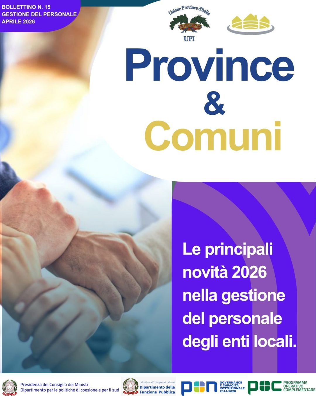 Pubblichiamo su Pi.Co. il quindicesimo numero della collana di Bollettini UPI a cura dell’esperto nel settore Gestione del personale, nell’ambito del progetto strategico “Province & Comuni”, dal titolo: “Le principali novità 2026 nella gestione del personale degli enti locali. Approfondimento operativo per gli Uffici Personale delle Province”.